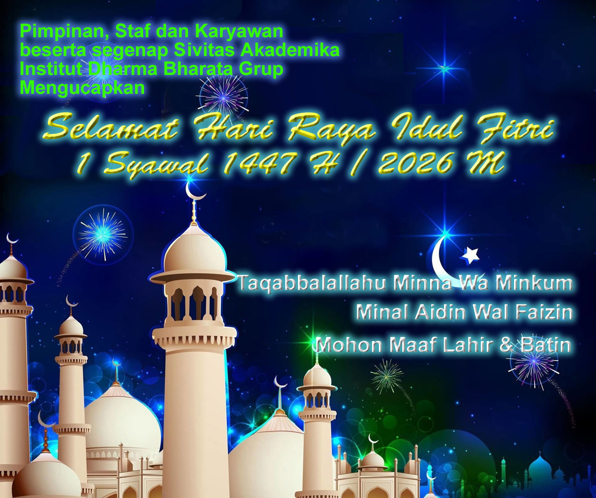 Pimpinan, Staf dan Karyawan beserta segenap Sivitas Akademika Institut Dharma Bharata Grup, mengucapkan Selamat Hari Raya Idul Firtri 1 Syawal 1447 H - 2026 M